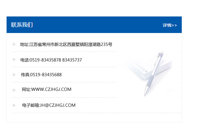 傳真:0519-83435688    郵編:213135    網址:WWW.czjhgj_com.tianyfloor.com    電子郵箱:JH@czjhgj_com.tianyfloor.com